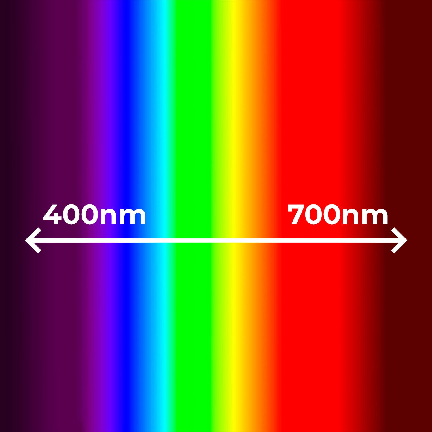 The visible spectrum of light is in the range of 400 - 700nm